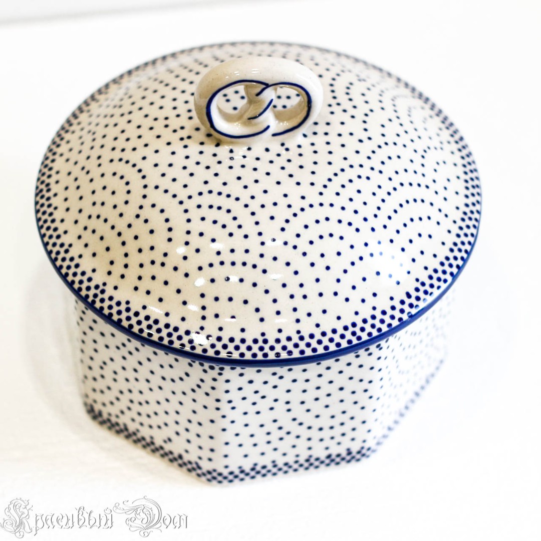 Красивая банка с кренделем для хранения печенья.